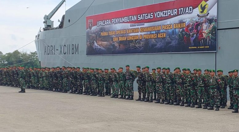Kedatangan para prajurit yang menggunakan KRI ADRI XCII BM ini menjadi penanda berakhirnya penugasan selama kurang lebih dua bulan sejak Desember 2025. Misi tersebut difokuskan pada percepatan pemulihan wilayah terdampak bencana alam di sejumlah daerah di Aceh.