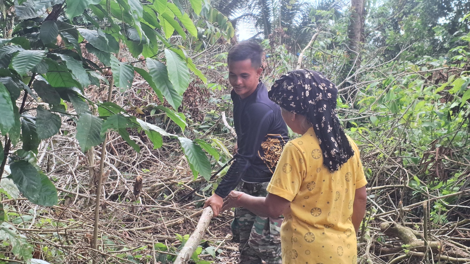 Salah satunya dilakukan oleh Pratu Wisnu Taripino yang membantu warga Kampung Linggang Amer mencari kayu bakar untuk kebutuhan memasak sehari-hari, Jumat (6/3/2026).