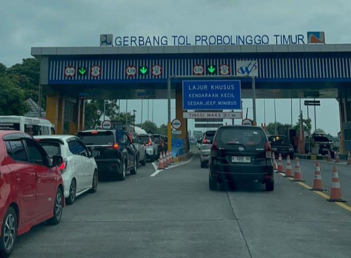 Antrean kendaraan di Gerbang Tol Probolinggo Timur saat arus mudik tetap padat namun lancar. Foto: Agus S/Media Kaltim