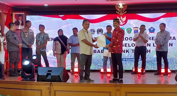 PPU — Badan Bank Tanah mencatatkan sejarah baru dalam perjalanan agraria di Indonesia dengan menyerahkan sertipikat tanah kepada masyarakat penerima manfaat reforma agraria di Kabupaten Penajam Paser Utara (PPU), Kalimantan Timur. Momentum ini menjadi tonggak bersejarah karena untuk pertama kalinya pembagian sertipikat dilakukan dengan skema Hak Pakai di atas Hak Pengelolaan (HPL) Badan Bank Tanah.