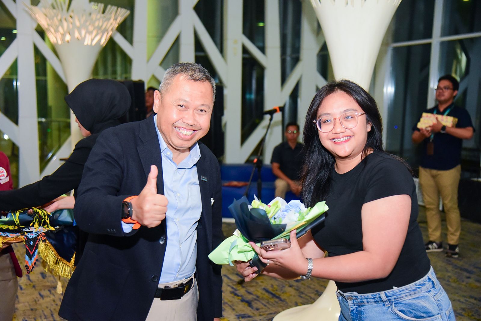 General Manager Bandara SAMS Sepinggan, R. Iwan Winaya Mahdar, bersama jajaran pejabat PT Angkasa Pura Indonesia, turun langsung menyapa penumpang dan menyerahkan kenang-kenangan. Ia menyampaikan bahwa momen pergantian tahun ini menjadi ajang refleksi dan ungkapan terima kasih kepada seluruh pihak.
