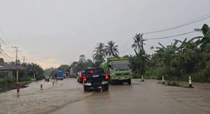 Sebelum simpang Muara Badak, genangan masih bisa dilalui meski arus air cukup kuat. Saat memasuki wilayah Tanah Datar, air sudah setinggi lutut. Mobil kecil berhenti, pengendara motor banyak yang mogok. Warga membantu mengatur arus lalu lintas. Saya menunggu beberapa menit sebelum akhirnya memutuskan menerobos perlahan.