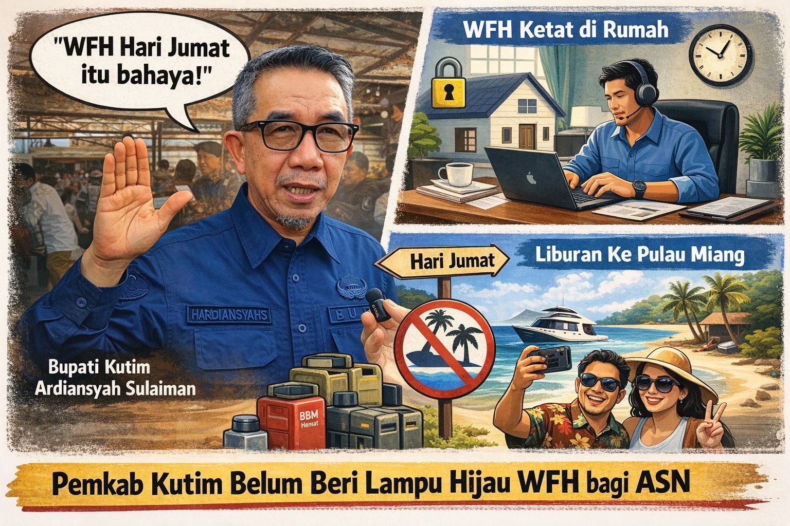 “Saya melihat kalau hari Jumat itu disuruh WFH, bagi orang Kutai Timur itu bahaya. Nanti bukan di rumah, tapi ada di Pulau Miang atau sebagainya. Nah, itu bahayanya,” ujarnya, Kamis (9/4/2026).