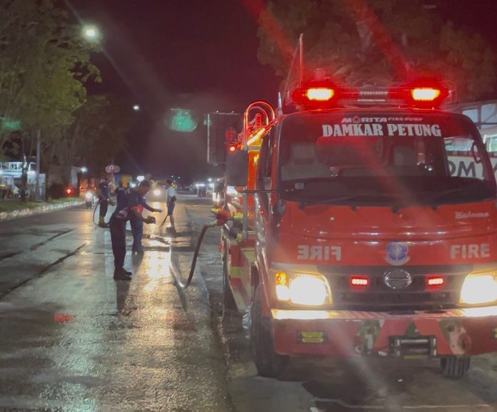 Petugas pemadam kebakaran kemudian bergerak cepat menuju lokasi dan melakukan penyiraman serta pembersihan badan jalan guna menghilangkan sisa tumpahan CPO.