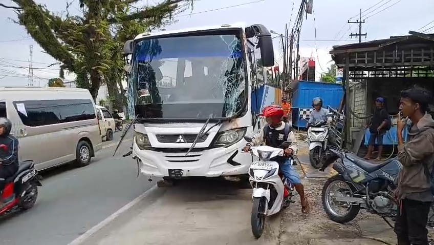 “Saya baru tahu bus berjalan setelah diberitahu warga. Tiba-tiba sudah menabrak spion mobil pikap, mengenai bak belakang truk yang terparkir, lalu meluncur hingga menabrak pohon,” ujarnya.