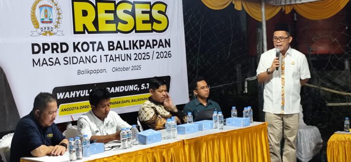 BALIKPAPAN — Anggota DPRD Kota Balikpapan, Wahyullah Bandung, menggelar reses di Lapangan Voli Kampung Buton RT 24, Kelurahan Sungai Nangka, Balikpapan Selatan, Rabu (22/10/2025) malam.