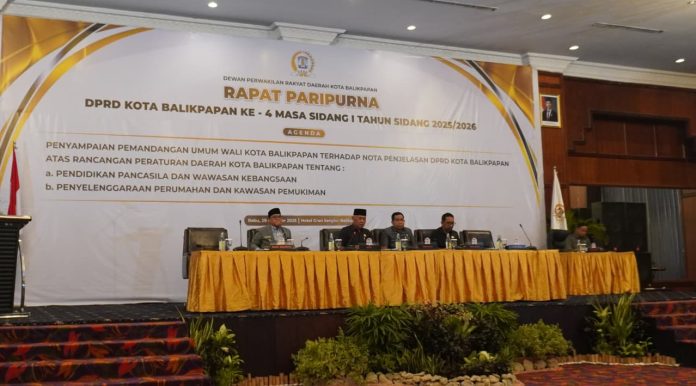 BALIKPAPAN — Dewan Perwakilan Rakyat Daerah (DPRD) Kota Balikpapan kembali melaksanakan Rapat Paripurna ke-4 Masa Sidang I Tahun 2025/2026, pada Rabu (29/10/2025), di Hotel Grand Senyiur Balikpapan.