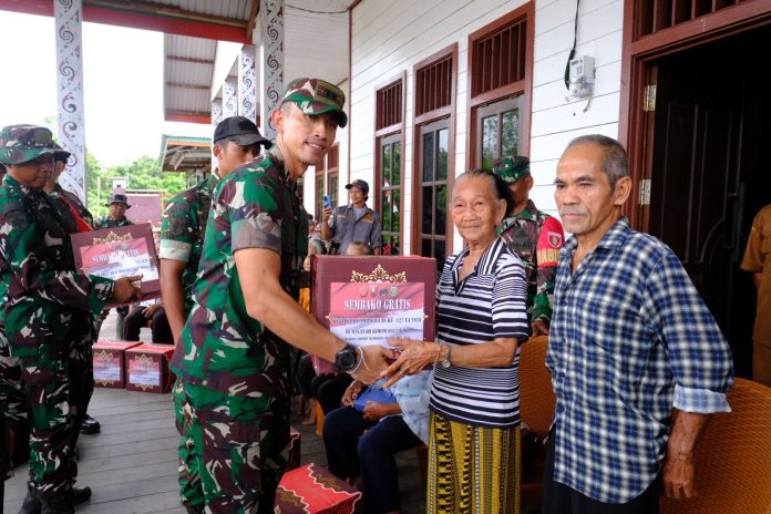 “Kehadiran kami di sini tidak hanya untuk mengevaluasi pembangunan fisik seperti TMAB dan MCK, tetapi juga untuk melihat langsung kondisi masyarakat. Kami berharap bantuan sembako ini dapat membantu meringankan kebutuhan sehari-hari warga dan semakin mempererat hubungan antara TNI dan rakyat,” ujarnya.