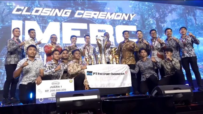 BALIKPAPAN – Tim Rescue Freeport Indonesia menjadi juara umum lomba ketangkasan dan kecepatan memberikan pertolongan Indonesia Mining Emergency Response Competition (IMERC) 2025 yang digelar di fasilitas Garuda Rescue Nusantara (GRN) di Kawasan Industri Kariangau di Balikpapan, Kalimantan Timur, 14-17 Agustus 2025.