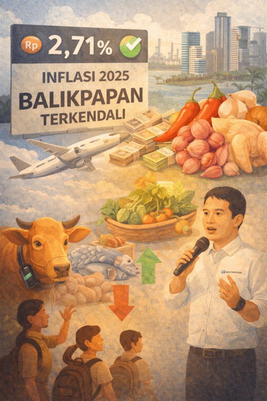 BALIKPAPAN — Laju inflasi di Kota Balikpapan dan Kabupaten Penajam Paser Utara (PPU) sepanjang tahun 2025 tercatat terkendali dan masih berada dalam rentang sasaran inflasi nasional. Hal tersebut disampaikan Kepala Perwakilan Bank Indonesia Balikpapan, Robi Ariadi, berdasarkan rilis terbaru Badan Pusat Statistik (BPS).