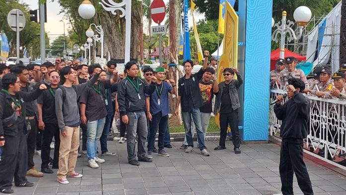 “Kami minta Wali Kota Balikpapan untuk menemui kita,” ujar salah satu mahasiswa saat berorasi.