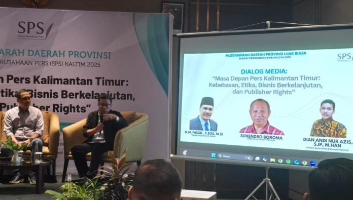 SUASANA ruang pertemuan Hotel Fugo Samarinda, Sabtu (11/10) sore masih terasa hidup ketika sesi terakhir Dialog “Masa Depan Pers Kalimantan Timur: Kebebasan, Etika, Bisnis Berkelanjutan, dan Publisher Rights” memasuki pembahasan penutup.