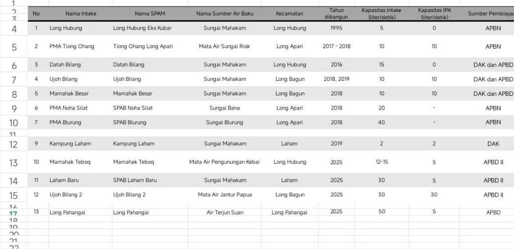 Dari sisi sumber air baku, mayoritas SPAM di Mahulu masih bergantung pada air permukaan, khususnya sungai.