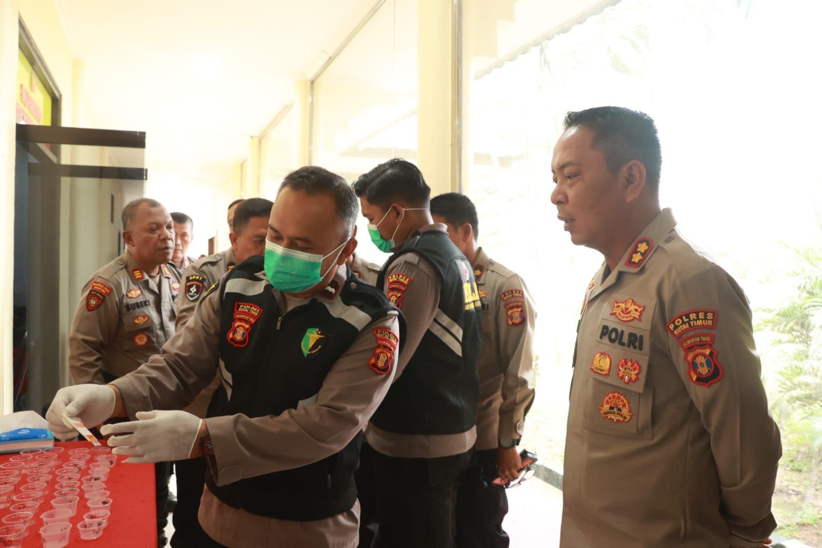 Kapolres Kutim AKBP Fauzan Arianto bersama seluruh Pejabat Utama (PJU) menjalani tes urine mendadak di Mapolres Kutim. Pemeriksaan dilakukan oleh Tim Urusan Kesehatan (Urkes) dan diawasi langsung Seksi Profesi dan Pengamanan (Propam) untuk memastikan proses berjalan transparan.