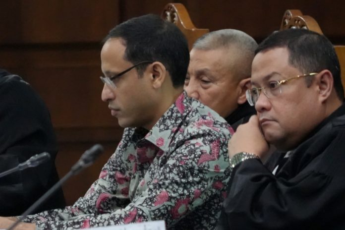 Nadiem hadir sebagai saksi dalam persidangan bagi tiga terdakwa, yakni Ibrahim Arief, Sri Wahyuningsih, dan Mulyatsyah.