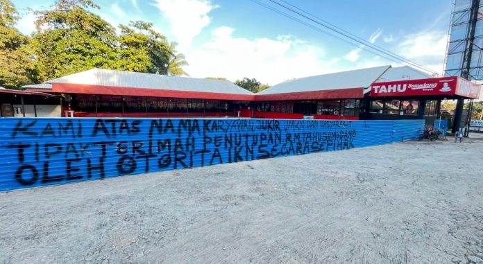 Sementara itu, berdasarkan pantauan di lapangan, proses pembongkaran bangunan mulai dilakukan. Bagian atap seng rumah makan terlihat sudah dilepas, menandai tahapan lanjutan dari penutupan operasional.