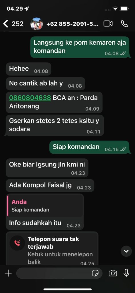 Tangkapan percakapan whatsapp diduga Parda Aritonang.