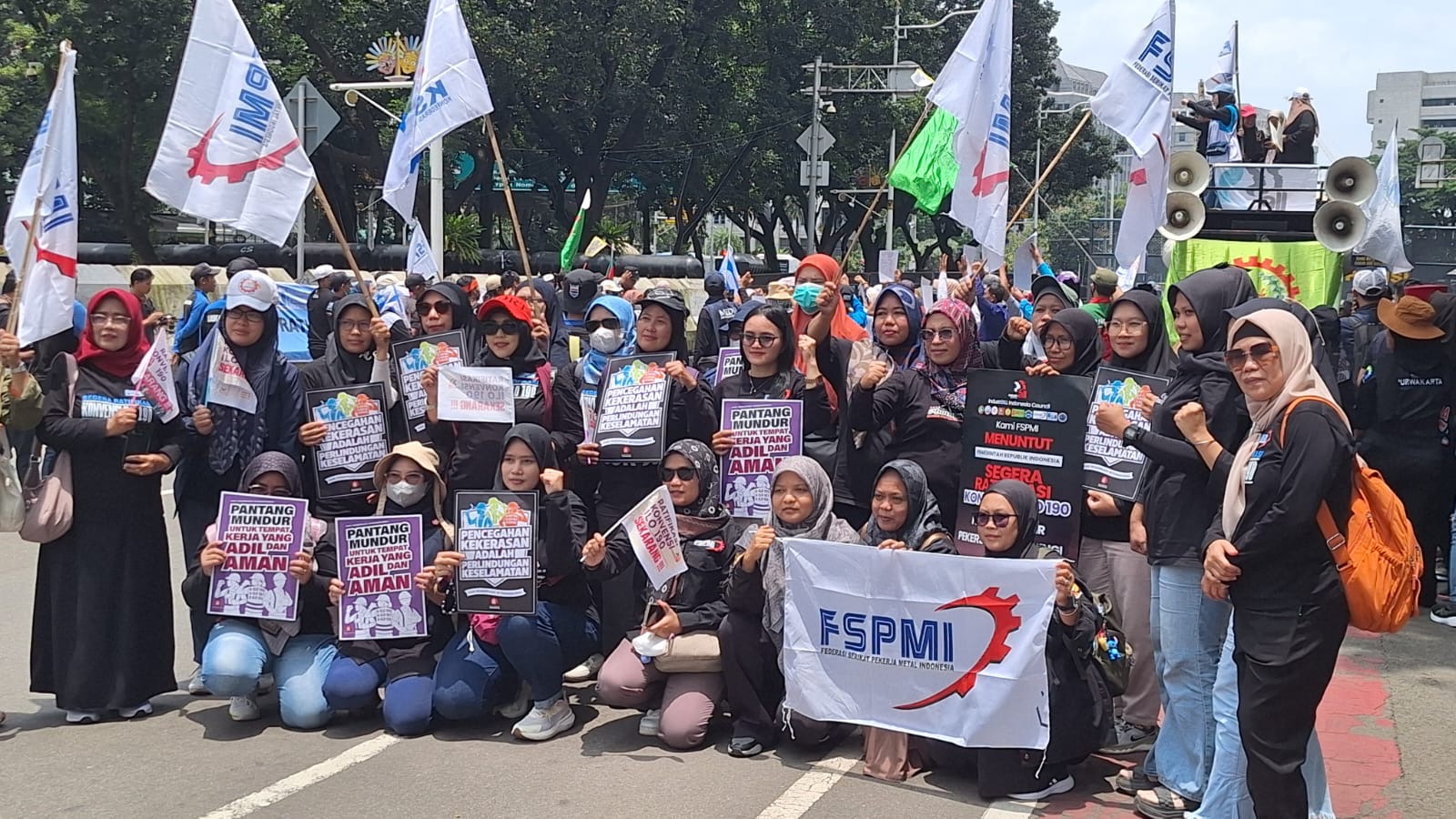 “Oleh karena itu, sekali lagi melalui aksi pada hari ini Industrial Indonesia Council, sepuluh federasi menyatakan sikap dengan tegas bahwa meminta pemerintah Indonesia untuk segera melakukan dan meratifikasi Konvensi ILO 190. Hidup buruh! Hidup perempuan!” pungkasnya.