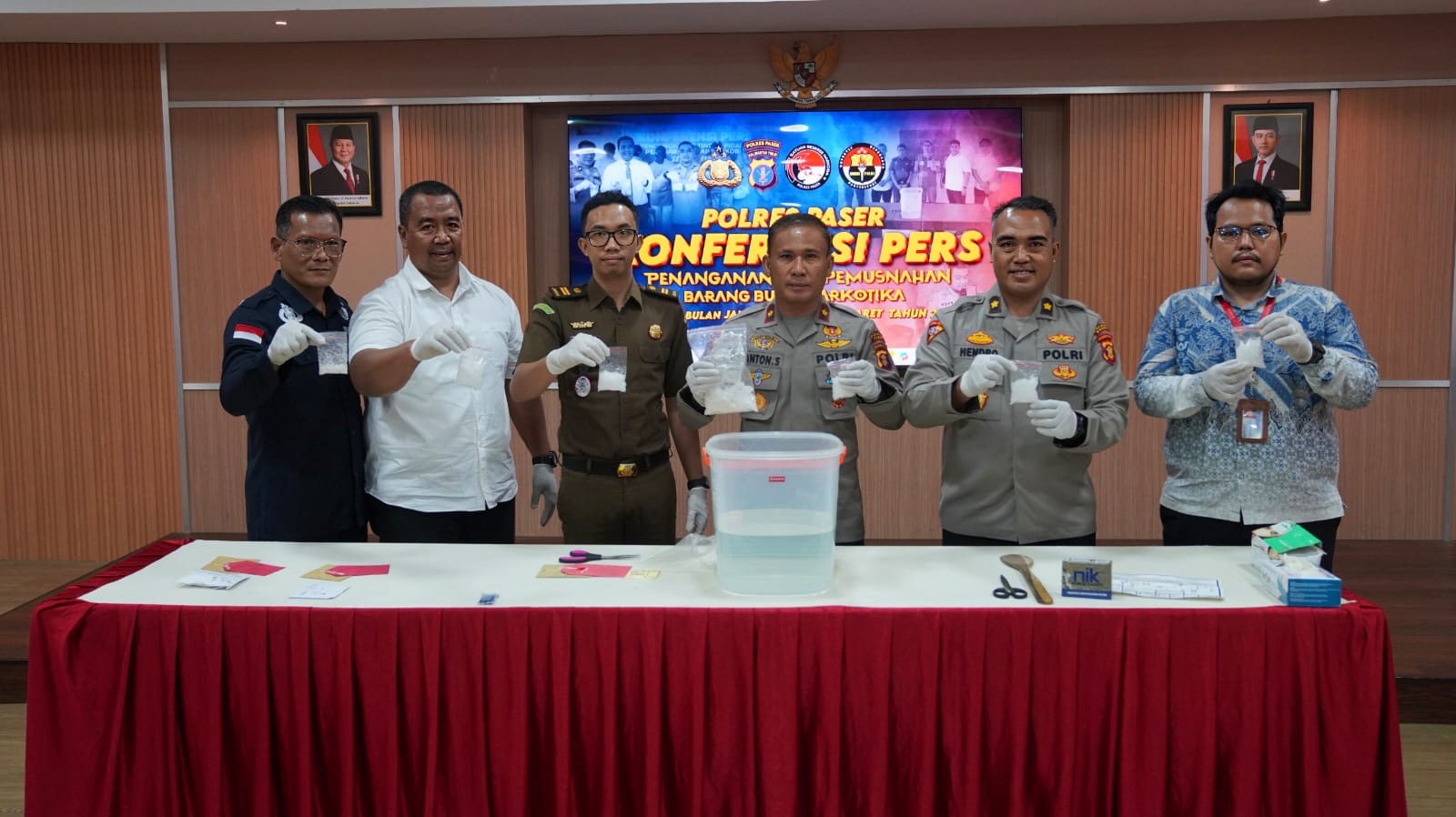 “Hari ini kita laksanakan pemusnahan barang bukti narkotika jenis sabu sebanyak 446,76 gram yang merupakan barang bukti dari 3 kasus yang berhasil diungkap oleh Polres Paser dan jajaran sepanjang tahun 2026 ini,” katanya.