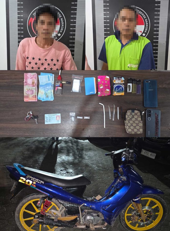 Polisi menyita tiga bungkus plastik bening berisi sabu dengan berat kotor 1,90 gram, sejumlah dompet, dua unit handphone merek Oppo dan Vivo, alat hisap sabu, pipet kaca, sendok takar, satu bendel plastik klip, uang tunai Rp1.300.000, serta satu unit sepeda motor Yamaha Jupiter Z warna biru.