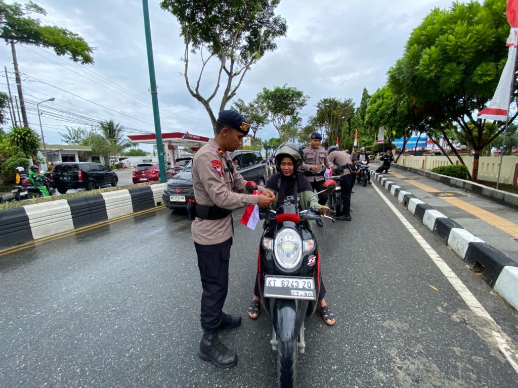 Satbrimob Polda Kaltim Sebarkan 3.000 Bendera Merah Putih di Empat Kota