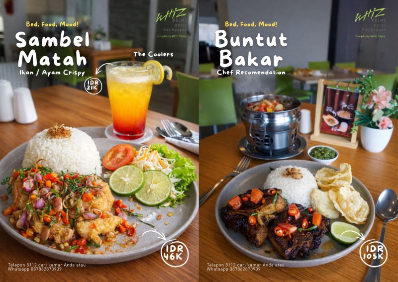 Kedua menu tersebut tersedia setiap hari dan dapat dinikmati oleh tamu yang menginap maupun pengunjung dari luar hotel di restoran Whiz Prime Hotel Balikpapan. Untuk pemesanan, tamu dapat menghubungi Telepon 8112 dari kamar atau melalui WhatsApp di nomor 0878 6287 3939.